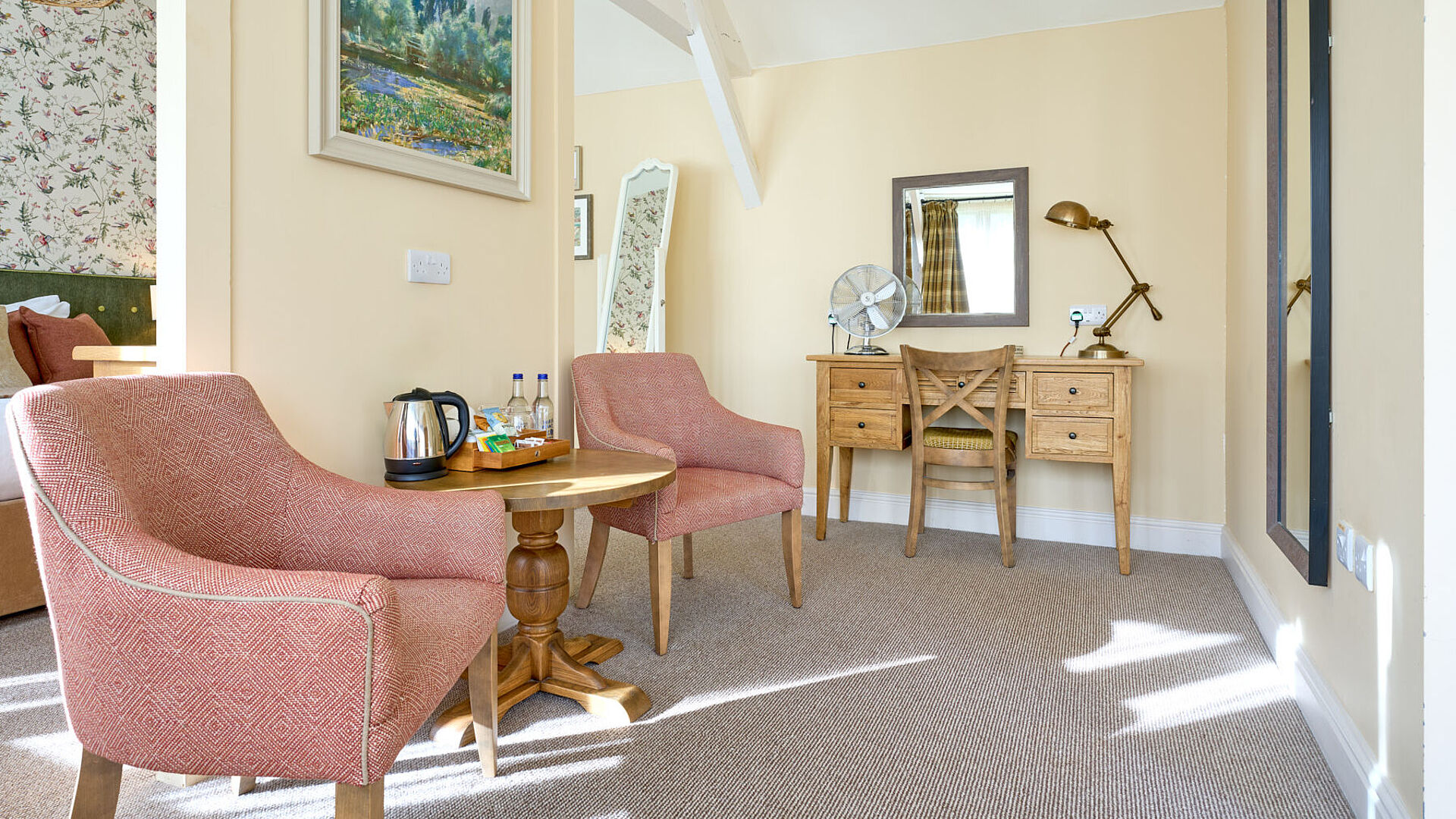 Our Hampshire bedrooms are a popular choice for everything, from family celebrations and countryside weddings (we're a licensed civil ceremony venue) to corporate stays, walking holidays, and relaxed staycations close to local attractions. Set in the peaceful grounds of Bartons Mill, complete with a tranquil river running through and expansive pub gardens, our bedrooms offer a true escape from the everyday, yet we’re just five minutes from the M3 and well connected for local businesses.